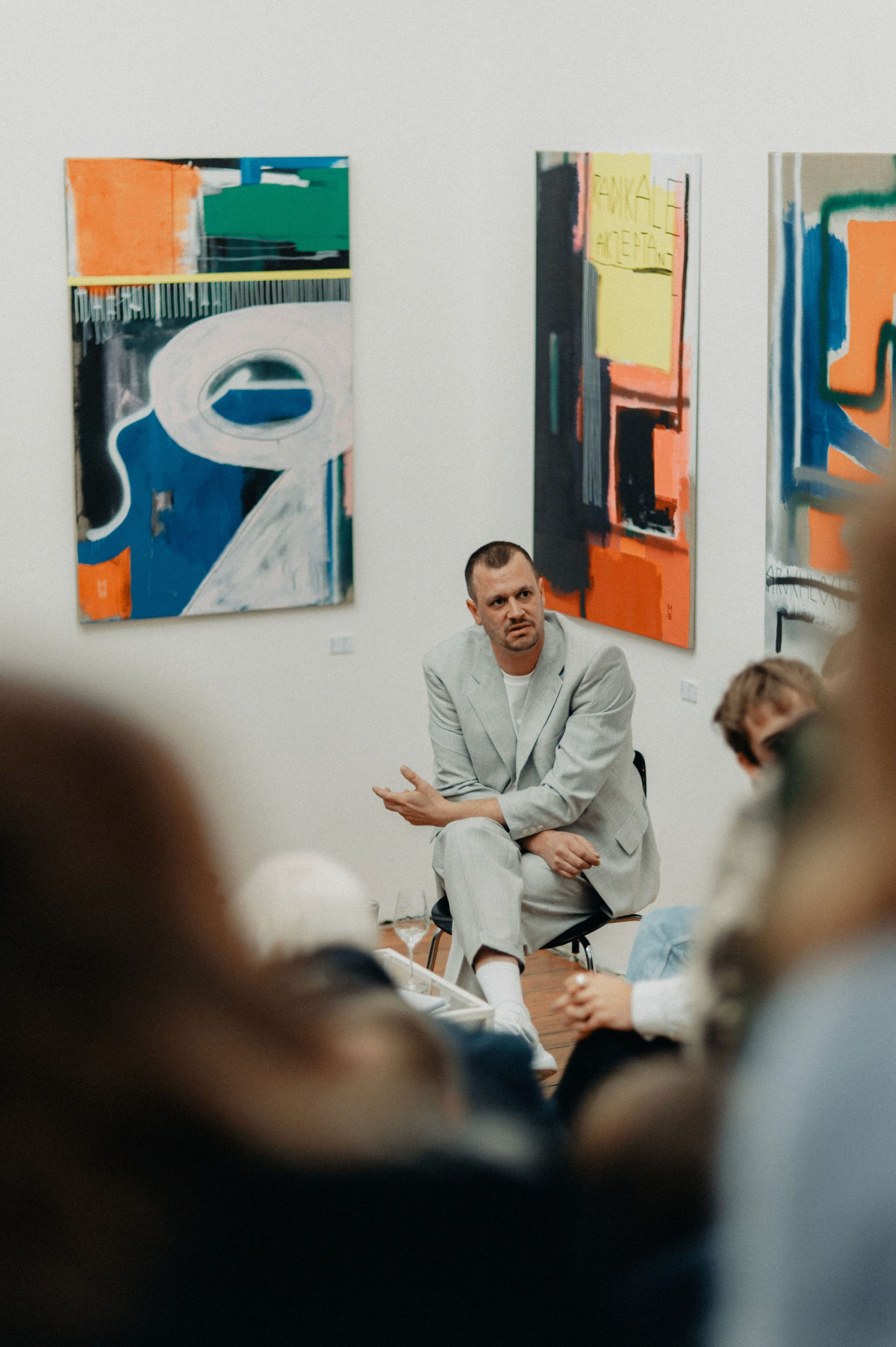 Mithilfe abstrakter Malerei, die auf Symbolen und Legenden basiert, regt er zu einer Neubetrachtung des Begriffs "Beziehungsweise" im weitesten Sinne an.